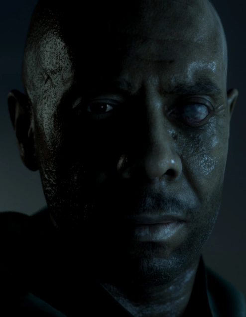 У Олсона чёрный цвет кожи, тёмно-карие глаза и тонкие короткие чёрные волосы. На голове у мужчины большой шрам, идущий от центра до середины лба, а также у него на лице под одним глазом большая веснушка: слепая и мутная.