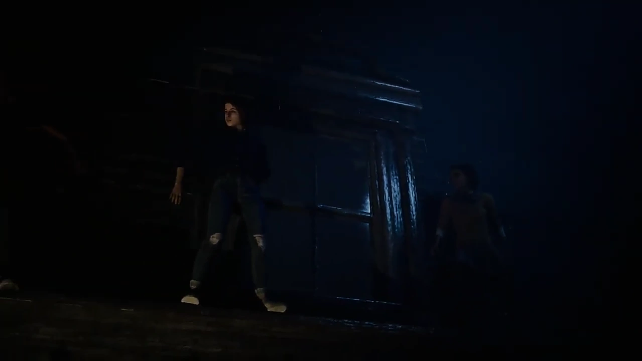 The surviving women run from Du'Met and hide behind a door. As they think they're safe, Du'Met slams his knife through it, scaring them. They head for a window. After climbing outside onto a ledge, the controlled character must complete two QTEs to avoid Du'Met grabbing for them from the window, though they escape his grasp regardless.