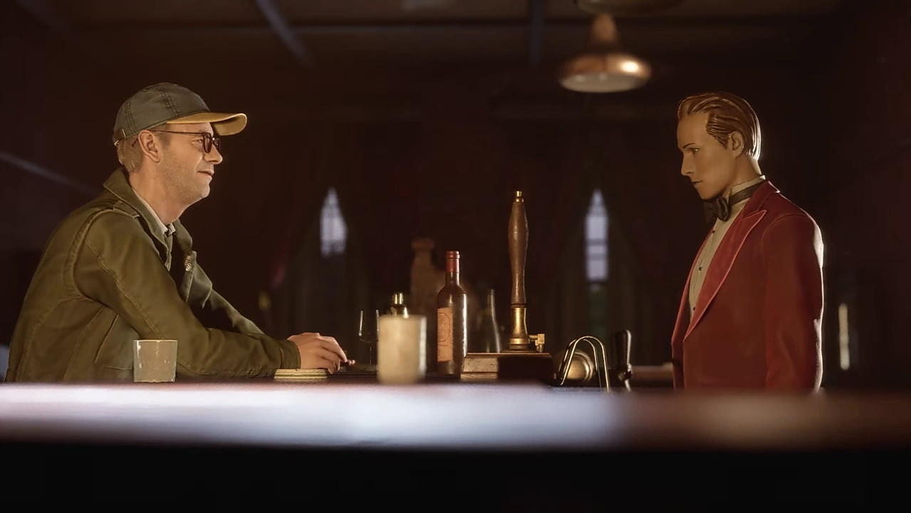 Charlie can head to the machine and give the change. Charlie becomes excited, only for the excitement to be short as the packet is stuck. Charlie can complete a QTE to hit the machine, but regardless, the machine turns offline. Charlie can explore the bar again, but after some time, the machine turns back on. As Charlie is busy with the machine, the animatronic moves and directs its hand to the man, with its point of view being seen through a camera. A figure then moves past behind Charlie.