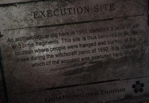 Execution Site is the first secret of Little Hope. It can be found by Taylor or Daniel along the main road. This secret appears in Pursued.