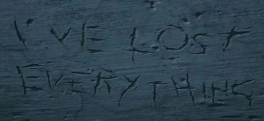 Marks scratched into the wall "I'VE LOST EVERYTHING".