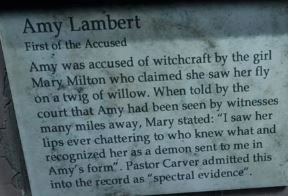 A plaque detailing Mary's charges against Amy, the first to be indicted in witch trials.