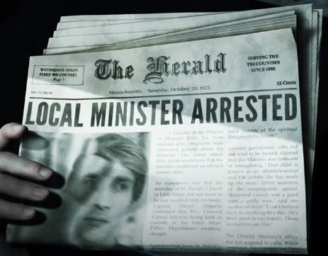 Newspaper: Minister Arrested is the twelfth secret of Little Hope. It can be found by Daniel in the general store. This secret appears in Another Way.