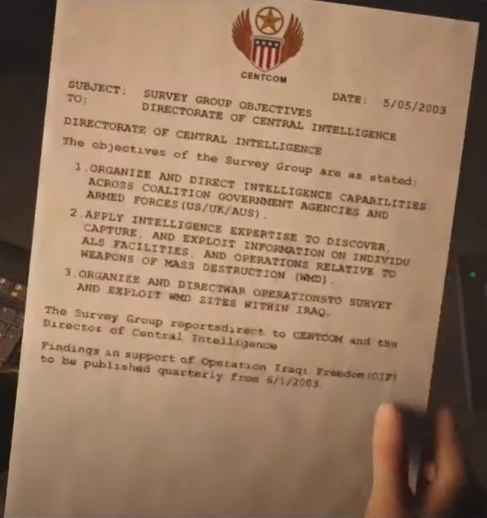 A letter to the Iraq Survey Group explaining their goals.