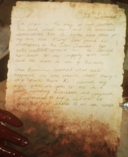 This journal entry describes how Mary Hodgson fell ill to a strange infection while working in the 'Star Chamber'.
