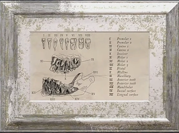A white-framed anatomical diagram depicting the human teeth.