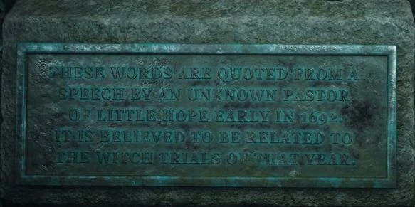- This secret reveals that Carver's involvement in the witch trials was erased, also hinted at by how his name was defaced on the Little Hope pastors list.