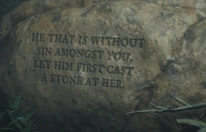 HE THAT IS WITHOUT SIN AMONGST YOU, LET HIM FIRST CAST A STONE AT HER.