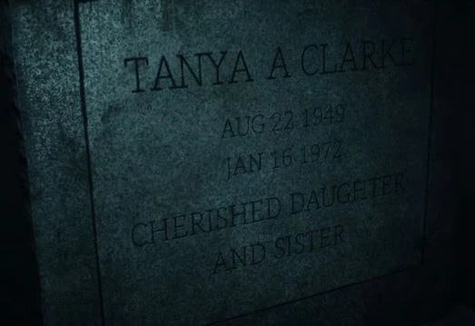 After the group enters the cemetery, they can go to the right and find the graves of the Clarke family. Tanya's is in the center, and there is a small vase with flowers that must be moved aside.