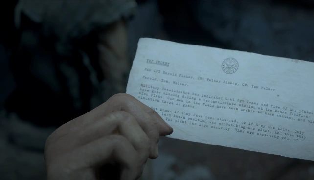 Top Secret Intelligence Note is the second secret of Man of Medan. It can be found by Alex in the lower deck. This secret appears in the Theatrical Cut of Matters of the Heart.