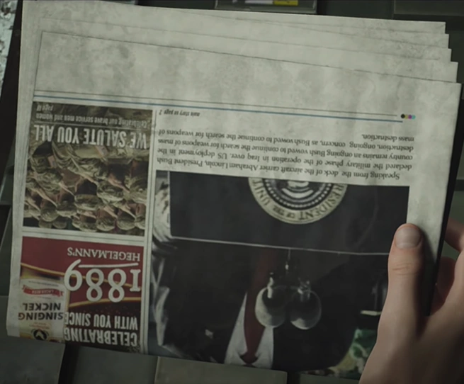 War Newspaper is a non-collectible item in House of Ashes. It can be found by Eric or Rachel in the briefing room. This item appears in The Briefing.